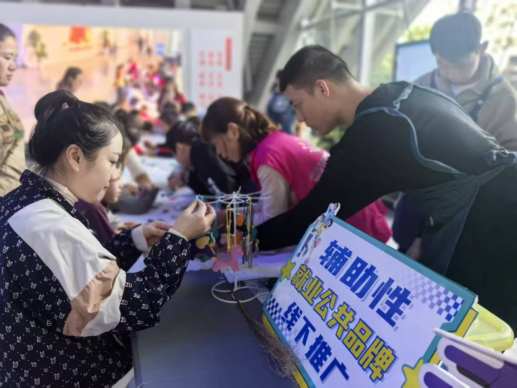 活动现场,来自残疾人托养中心的学员们以“特别指导老师”的身份,向参与活动的亲子家庭现场教学“手心”手工艺品制作。在温馨融洽的氛围中,孩子们在学员们的悉心指导下,亲手完成了一件件精美的手工作品。这种沉浸式的互动体验,不仅让参与者感受到手工制作的乐趣,更让公众亲身见证了残疾人群体的才华与价值。