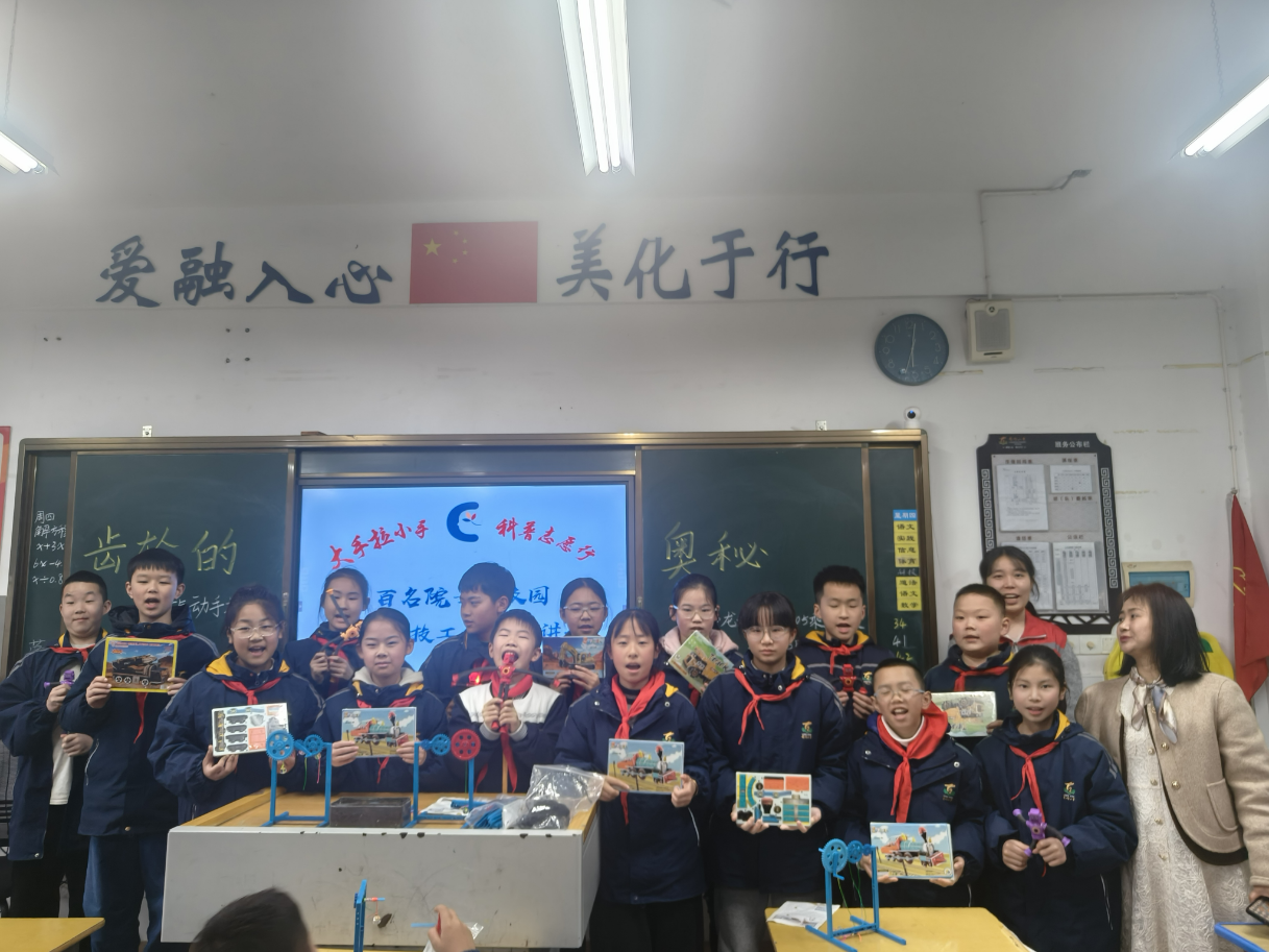 聘任仪式结束后,丰富多彩的科普活动正式拉开帷幕。四五年级齐聚校园综合馆,共同观看了精彩绝伦的《科学魔法秀》。科普志愿者们通过趣味实验、互动表演等形式,将枯燥的科学原理转化为直观生动的视觉体验,现场掌声不断、欢呼声此起彼伏,孩子们在欢声笑语中近距离感受科学的神奇与魅力,求知欲和探索欲被充分激发。与此同时,分班级开展的特色科普课程同样备受欢迎。《AR》编程课程带领学生走进虚拟与现实结合的科技世界,让孩子们在动手操作中感受编程乐趣,培养逻辑思维和创新能力;《齿轮的奥秘》课程通过实物拆解、小组探究的方式,深入浅出地讲解机械运转原理,引导学生发现生活中的机械科学,培养动手实践能力;《爱牙护牙》课程则聚焦青少年口腔健康,用通俗易懂的语言、趣味互动的形式,普及口腔保健知识,帮助孩子们养成良好的卫生习惯。多样的课程内容、新颖的教学形式,让每一位学生都沉浸在科学学习的快乐之中,收获满满。