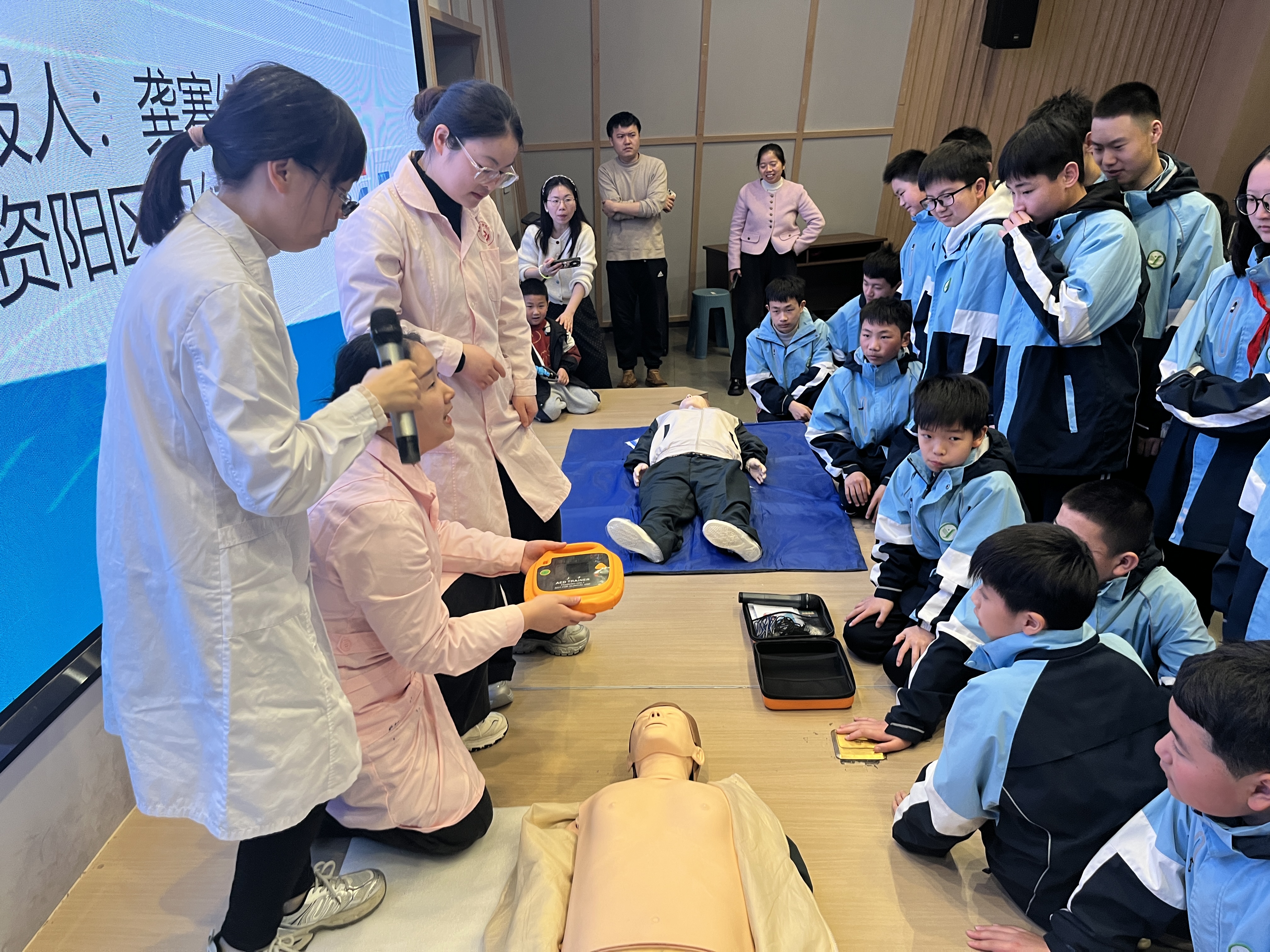 台下益阳师范附属学校的学生们神情专注,空气仿佛凝固。那个曾在屏幕上鲜活的生命,如今成为这堂急救课最深刻的注脚。医生继续道:“心搏骤停的黄金抢救时间只有4分钟,而急救车平均到达时间往往超过这个时限。这4分钟,就是生与死的距离。不懂急救,面对突发状况只能手足无措;掌握方法,就能在黄金时间里,为自己和身边人争取生机。”