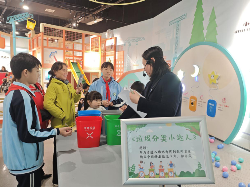 活动伊始,孩子们化身“垃圾分类小达人”,一头扎进色彩斑斓的海洋球池。池中散落着印有各类垃圾图案的小球,孩子们需要快速辨别并投入对应的分类垃圾桶。“电池是有害垃圾!”“香蕉皮是厨余垃圾!”此起彼伏的童声里,垃圾分类的知识悄然入心。家长在一旁加油鼓劲,有的还和孩子一起讨论,现场气氛热烈而有序。