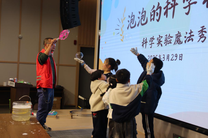 整场魔法秀在漫天飞舞的泡泡中落下帷幕。孩子们伸手去接,泡泡在指尖轻轻弹跳,折射出七彩光芒。家长们举起手机,记录下这梦幻的一刻。一位妈妈感慨:“以前觉得泡泡就是孩子的玩具,今天才知道,里面藏着这么多科学道理。”