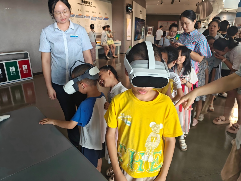 暑期在科技馆序厅开展的科学益次方活动包含五大亮点:结合七大展厅的“深游科技馆·答题赢”;沉浸式“VR体验”带观众上天入海、探秘宇宙;“百科争锋周周答”开展植物、动物、古诗词等有奖问答;“趣味实验室”展示毛细现象、摩擦起电、酸碱中和反应等实验;“智趣大闯关”设置乒乓摇摇乐、穿越火线、图形间谍等互动项目。