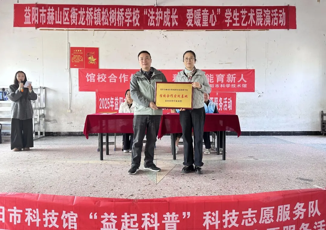 金秋送爽,科教暖乡。为播撒科学种子,服务乡村教育,10月23日,益阳市科技馆“益起科普”志愿者服务队带着满满的科技器材与暖暖的爱心,走进了衡龙桥松树桥学校,不仅正式缔结了馆校合作的深厚情谊,更以一场精彩的科普盛宴,点燃了乡村孩子们的科学梦想。