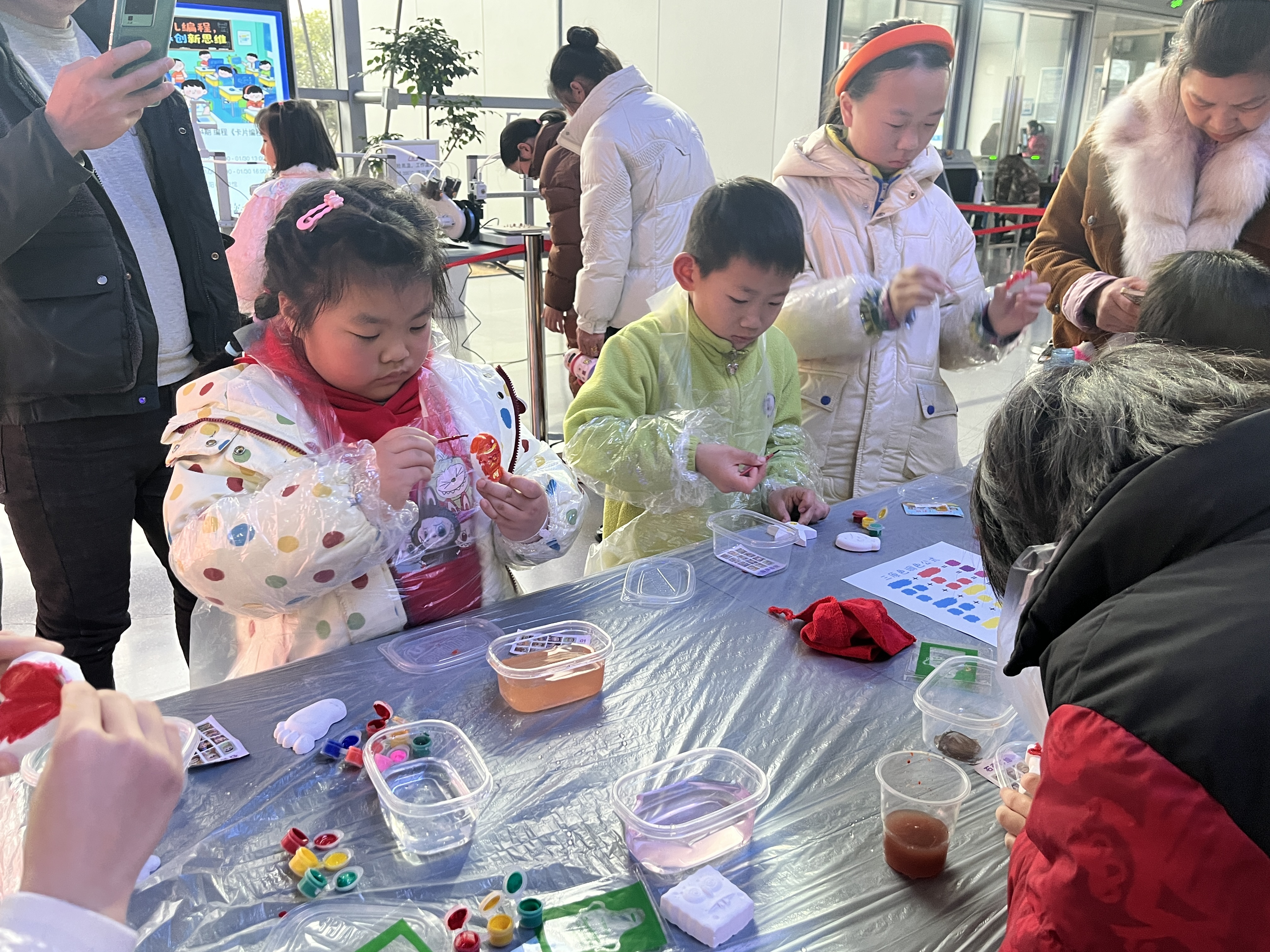 此前开展的石膏娃娃彩绘活动,则从静态创作的角度点燃了孩子们的艺术与科学热情。孩子们在调色中探索三原色原理,在绘画中规划布局,将天马行空的想象固化为独一无二的伙伴。从为静态模型赋彩,到让废旧容器焕发动态光影,这两场连续的活动构成了寒假创意手工系列的精彩开篇。